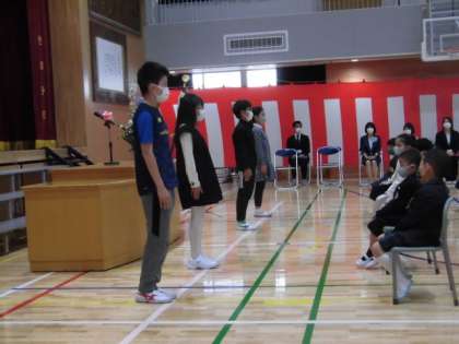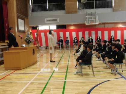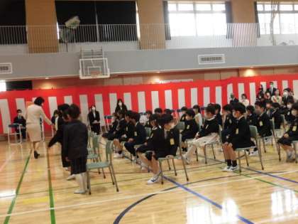 3組の入学式です。3組は、最初に教室でお話を聞いてからの入学式でした。学校に来てから少し時間がたってからの式になりましたが、最後まで静かに式に参加していました。入場も退場もとても上手でした。