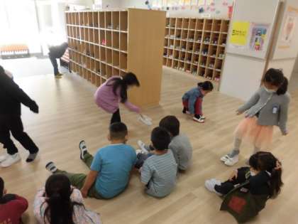 先生のお話をよく聞いて、広いところで上履きを履いたり、黙って右側を歩いたり。