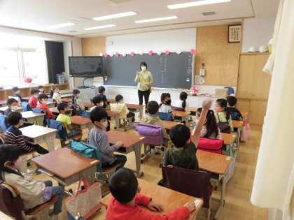 1年生は、ランドセルの片づけ方や、お返事の仕方、廊下の歩き方、靴箱の使い方、名札のつけ方などを学んでいます。
