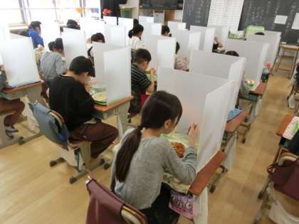 今日から、1学期の給食が始まりました。パーテーションをして、静かに食べることは、変わりません。新しいクラスもみんなで協力して準備を進めていました。今年度もおいしい給食をしっかりと味わって食べましょう。
