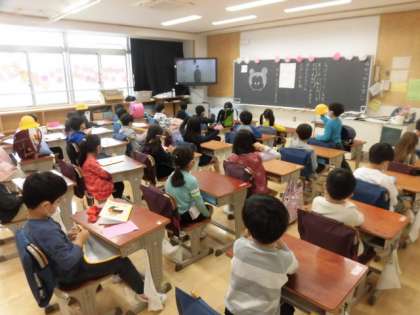 朝の時間に、TV放送による「1年生を迎える会」がありました。