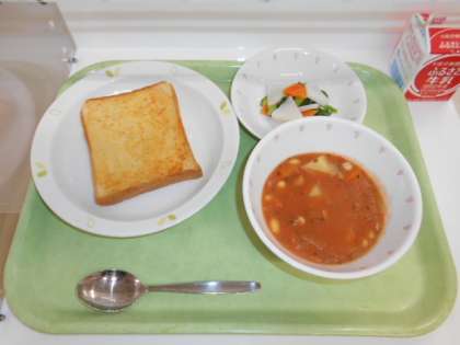 ガーリックトースト 牛乳 ビーンズシチュー
