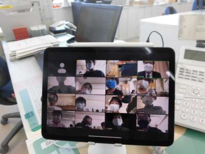 今日は、一人ずつタブレットを使用してzoom朝の会をしました。