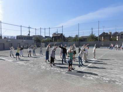 気持ちの良い青空の下、4年生のラジオ体操・持久走がスタートしました!