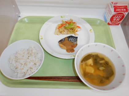 麦ごはん 牛乳 魚のピリ辛ソースかけ