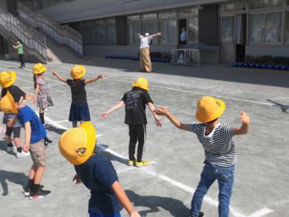 朝のランランタイム。校庭では、1年生がラジオ体操をしています。並び方もとても上手になってきました。もちろんラジオ体操も最後まで、先生の方を見てしっかりとやっていました。今日も一日元気に過ごしましょう。