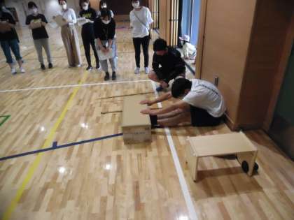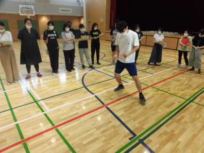 6月に体力テストを実施します。感染予防に努めながら、正しくテストができるよう、先生方が集まって確認をしています。