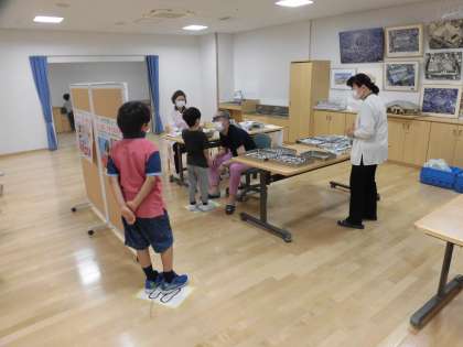 全校の児童が耳鼻科検診を受けました。広い多目的室にクラスごとに行って検査をうけました。口を鼻を見てもらうときは、マスクを上手にずらしていました。検査を受けた後は、手を洗って静かに教室に戻っていきます。明日は、同じ多目的室で眼科検診があります。明日も静かに検査を受けましょう。