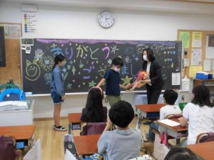 教室では、代表者が手紙を読んで花束を渡しました。