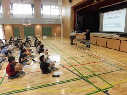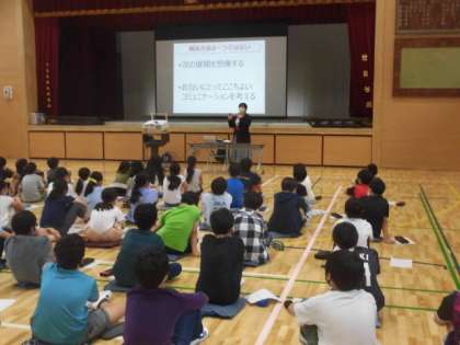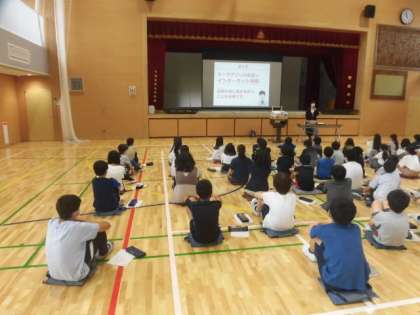 6年生が、体育館で「ネットリテラシー醸成講座」を受けました。インターネットの世界の危険についてわかりやすく教えていただきました。児童がこれから生きていく世界はますますインターネットが普及してくる時代です。そんな中で自分をしっかりともって有効的に活用するためには、ネットの良い点、悪い点をしっかりと理解していくことが大切です。子どもたちがどんなことを学んだか、お家でも聞いてあげてください。