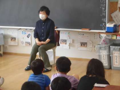 明日から、読書週間がはじまります。読書週間にあわせて今年も「おはなしかめさん」のみなさんに来校いただき、お話をしてもらいました。今日は3校時に3年3組と5年3組、4校時に2年3組と5年1組で実施しました、どの学級も静かにお話を聞いていました。明日と7月1日に残りのクラスは実施します。