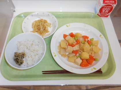 麦ごはん ふりかけ 牛乳 じゃがいものそぼろ煮