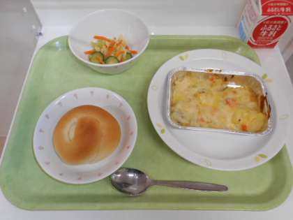 ミルクパン 牛乳 ポテトグラタン キャベツサラダ
