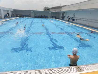 クロール25m、平泳ぎ25m、長距離50mのコースに分かれて、それぞれ練習をしていました。