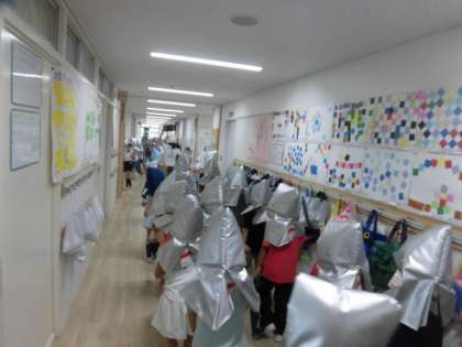 1学期最後の避難訓練を行いました。3時間目と4時間目の間の5分休みに、大きな地震が発生したという想定でした。