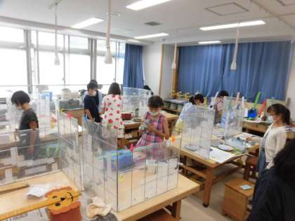 感染防止対策に努めながら、図工、音楽の授業もしています。
