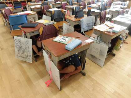 2時間目に、大きな地震の発生を想定した避難訓練を行いました。