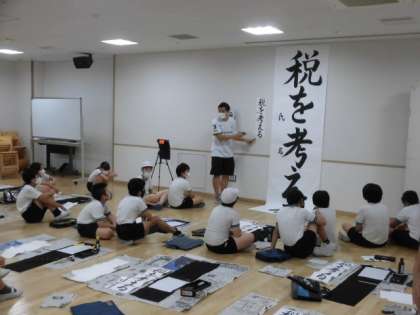 6年1組が、3・4時間目に「税を考える」の書写を行いました。