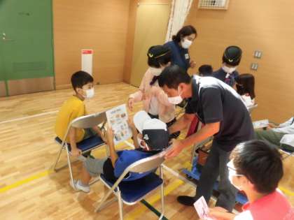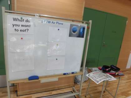3つ目は、「Air Plane」です。飛行機内で、機内食を渡す場面です。CA役の人は、帽子やスカーフも巻いてすっかりなりきっていました。