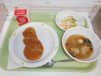 きなこあげパン 牛乳 肉団子入り春雨スープ