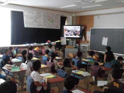 今朝は、TV放送による音楽朝会がありました。
