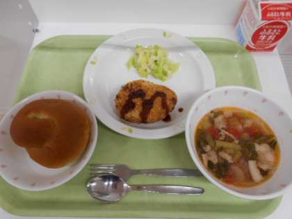 あしたばパン 牛乳 コロッケ ゆでキャベツ