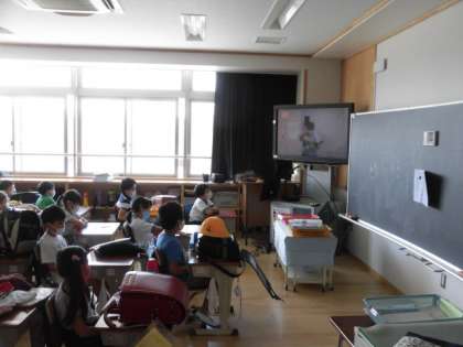 今朝は、TV放送による児童朝会がありました。