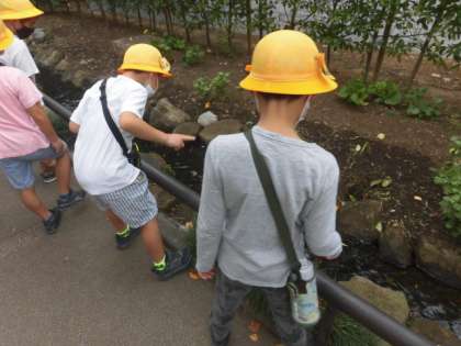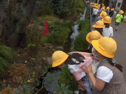 1年生が、2校時にせせらぎ緑道に沿って環七まで歩いて行ってきました。小学生になって初めてみんなでのお出かけです、途中の横断歩道もしっかりと手をあげて渡っていました。せせらぎの流れの中にグッピーを見つけたり楽しく探検しました。