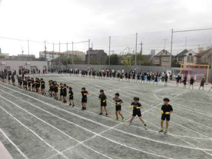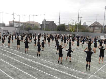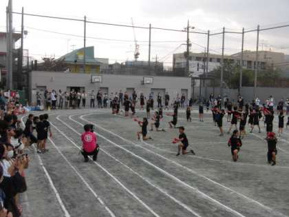 クラスごとのカラー手袋を付けて、踊りました。2回の隊形移動にも挑戦しました。保護者の方からの手拍子で、盛り上がりました!