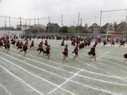 今年の5年生ならではの一風変わったソーラン節。ソーラン節×和ロックのビートに合わせたクラス同士のかけ合いや連動が、とても見応えありました。