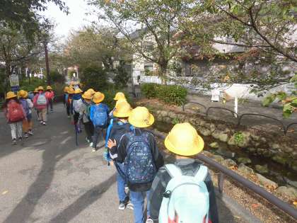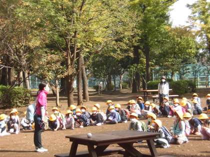 良い天気の中、羽根木公園に向かって元気に歩いて行きました。公園について、先生のお話を聞いて、これから遊びが始まります。