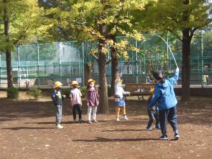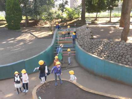 遊びの時間です。班ごとに決めてきた「遊ぶ場所」と「遊び」。鬼ごっこや縄跳び、迷路やボール遊びなど、みんなで仲良く、元気に遊んでいます。