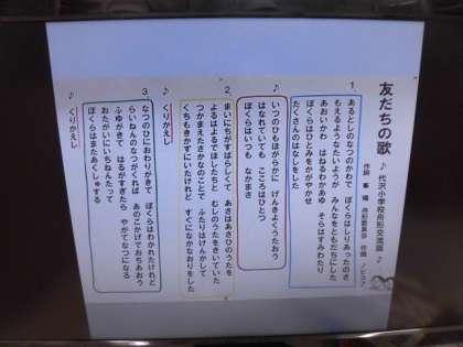今日は、その交流の時に歌っている「ともだちのうた」を全校で歌いました。