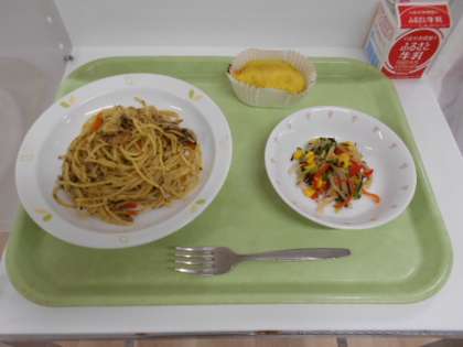 和風スパゲッティ 牛乳 大根とひじきのサラダ