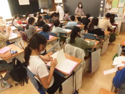 受け入れ式の後は、それぞれの教室で、育てるときに気を付けることなどを教わりました。しっかりと育てていくためには、みんなの協力が必要です。