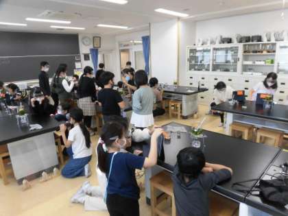 校内ではダンスや合奏、理科室では葉脈標本作りなど、楽しく真剣に活動する様子がありました。