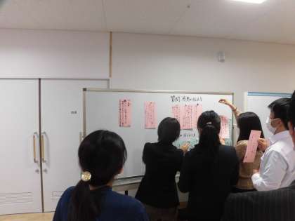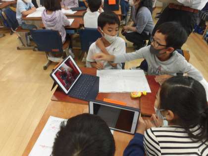 5校時に2年1組で生活科の校内研究授業を行いました。9日(火)に雨の中、町たんけんに行って、いろいろインタビューしてきた子どもたち、自分の行った場所のことを友達に伝えました。タブレットで取ってきた写真も使いながら、行った場所やインタビュした人の良いところなどを発表しました。5つの場所について、全体でも発表して、「代沢のまちのよいところ」をたくさん見つけていました。授業の後は、授業について先生方で協議を行い、最後に講師の先生から生活科の授業づくりについてご指導いただきました。子どもたちが言葉をつないで発表していることにお褒めの言葉をいただきました。