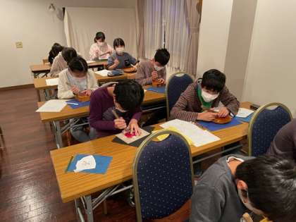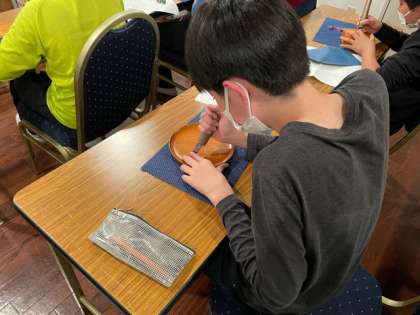 1組Aグループの日光彫が始まりました。説明をしっかり聞いて真剣に取り組んでいます。