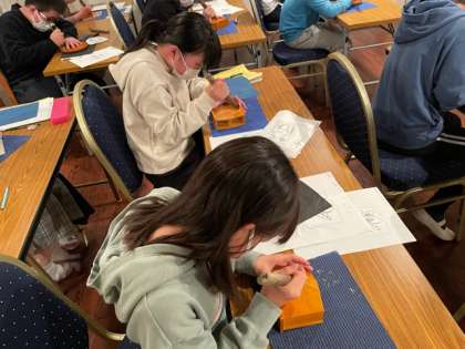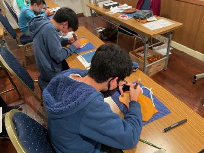 1組Bグループの日光彫体験が始まりました。Aグループは、時間内にみんな完成しました。Bグループの人も頑張りましょう。2組の子どもたちは、明日の夜、日光彫体験をします。