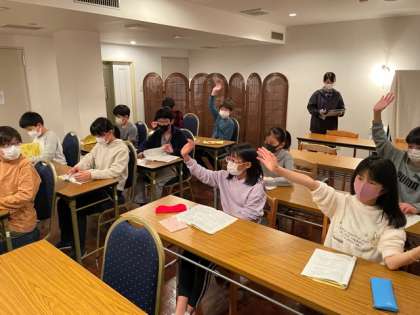 日光林間学園の実行委員が集まって一日めの反省をしています。良かったこと、明日の課題などたくさん発言しています。今日の反省を明日に生かしていきましょう。今日の予定は終了です。就寝準備をしっかり休みましょう。