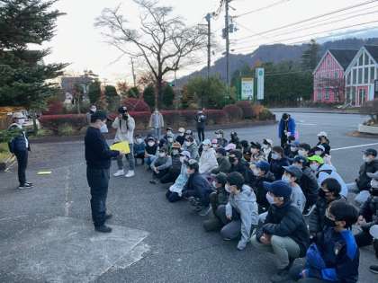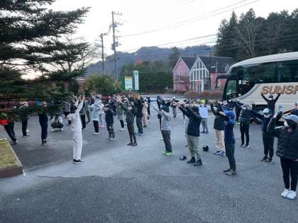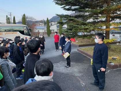 駐車場で朝会です。日光の気温は4度です。目が覚める寒さです。しっかりと体を動かしましょう。