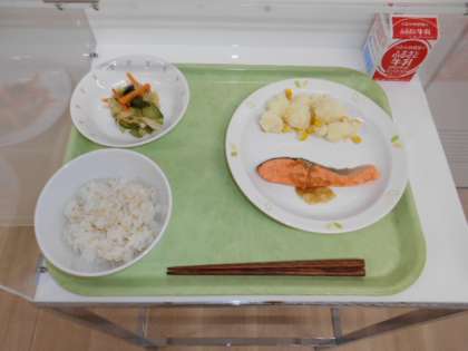 麦ごはん 牛乳 魚のステーキソース コーンポテト