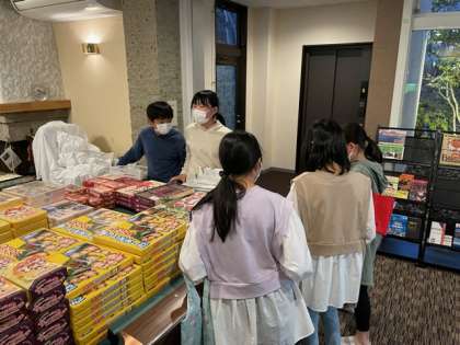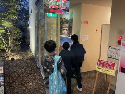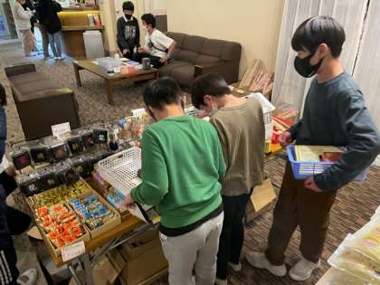1組Bグループがお土産を買っています。お家の人のこと考えて悩んでいます。今日の入浴は、2組Bグループからです。ゆっくり湯船に浸かって疲れを取りましょう。