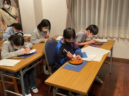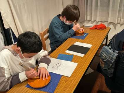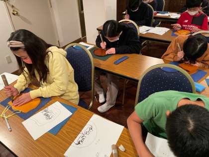 2組の日光彫体験が始まりました。最初は、Aグループです。しっかりと説明を聞いて、丁寧に彫りましょう。