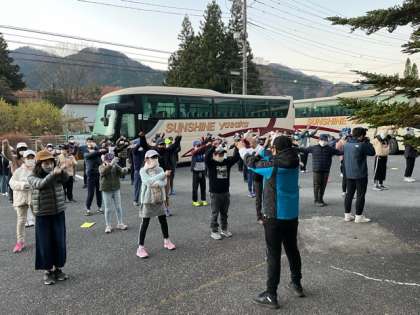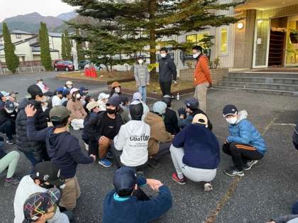 6時20分からの朝会、気温は4度です。日の出時刻前ですが、遅れれず集合しています。今日もしっかり体を目覚めさせましょう。