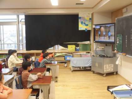 12月は、「なわとび月間」です。朝のランランタイムではクラスごとに「長繩とび」に、中休み等には、「短縄とび」に挑戦します。今日は、体育朝会で体育委員会のみなさんが、どのように取り組むか説明してくれました。また、短縄とびの色々な技の見本も見せてくれました。一か月間、縄跳びに挑戦して体力向上を図りましょう。