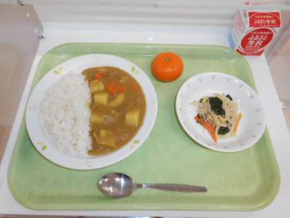 シーフードカレーライス 牛乳 和風サラダ くだもの