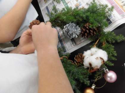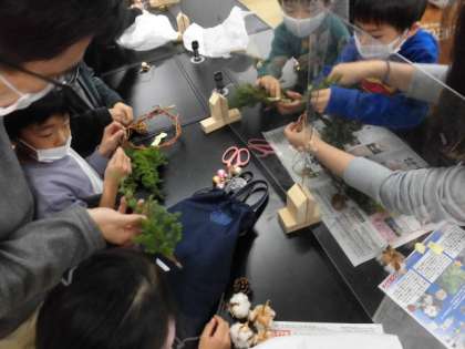 ワンコインクラブの方に作り方を教えてもらいながら、それぞれのクラスで思い思いのリースを作ることが出来ました。