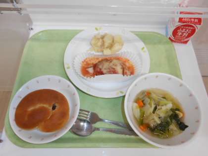 ぶどうパン 牛乳 魚のピザ風 ジャーマンポテト