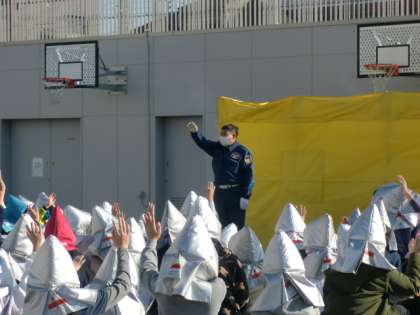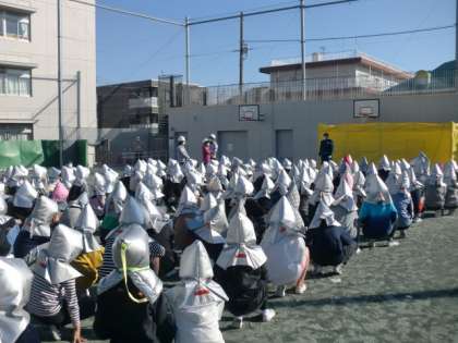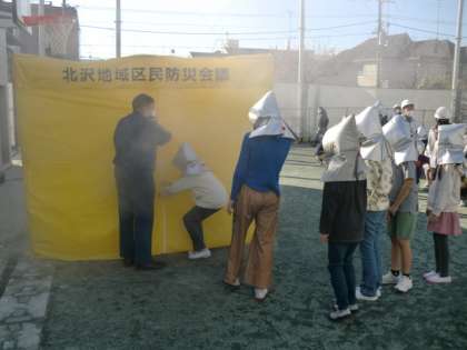 防災センターの方の説明を真剣に聞いて、身をかがめながら訓練することができました。